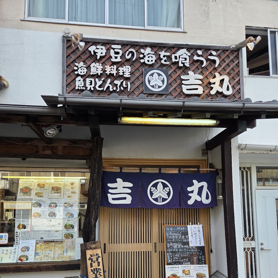 河津は花見客が思ったよりは多かった。といっても平日で桜祭りもなしなので、前回来た時に比べると人も車も3割くらいしかいないかな?前回来た時は車がごった返していて街中が交通麻痺していたイメージだが、さすがにそこまではひどくない。駐車場も並ぶこともなくすんなり入ることができた(1000円)。到着前あたりから娘が「お腹が空いた!」といいだしたので、花見の前にまず昼食に。駐車場のおじさんに「お昼ご飯食べるのにどこかおススメのお店ありませんか?」と聞くと、駅前の「吉丸」というお店を教えてくれた。